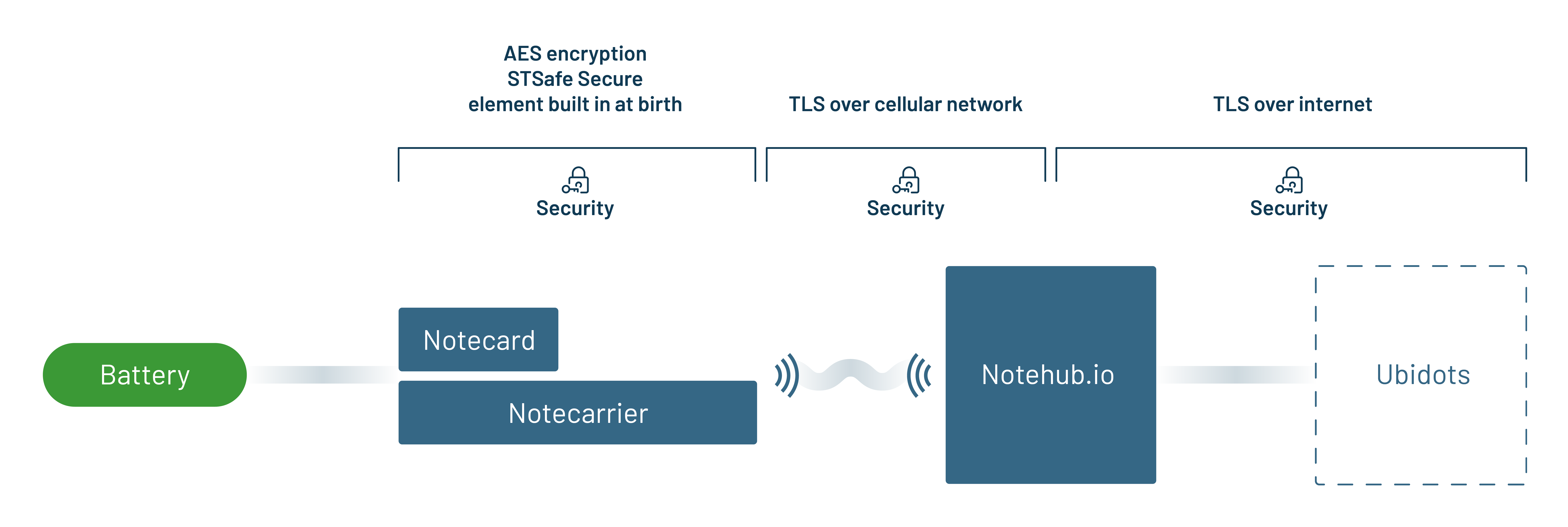 Modern services require that the cloud and the device perform bidirectional authentication to provide stronger safeguards. For many applications it’s important that data is encrypted. For this reason, the Notecard integrates an STSAFE Secure Element which contains symmetric keys manufactured into the chip. With this functionality, there’s no need to handle or manage secure key material.